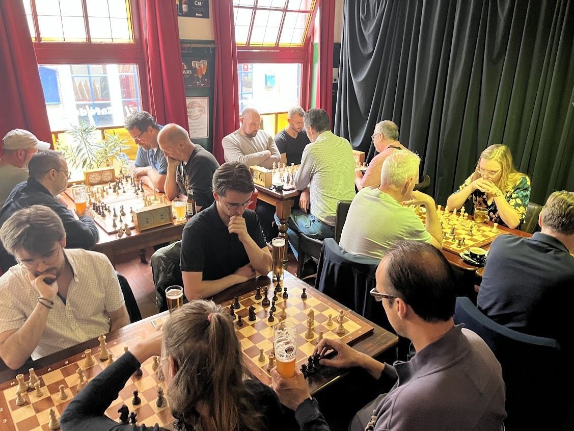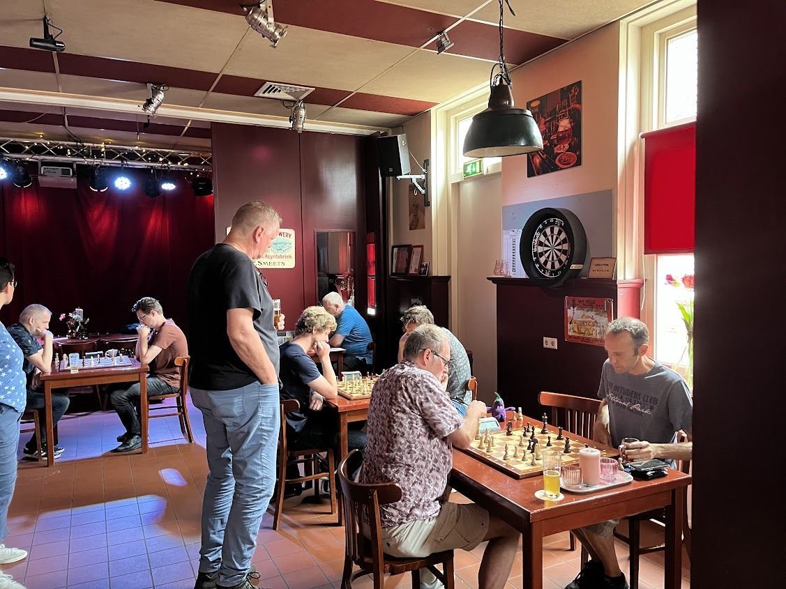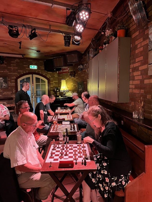 Schaken In Oosterhoutse Kroegen 2023. Zaterdag 2 september werd het door Schaakvereniging D4 georganiseerde SIOK toernooi gehouden in het Centrum van Oosterhout.