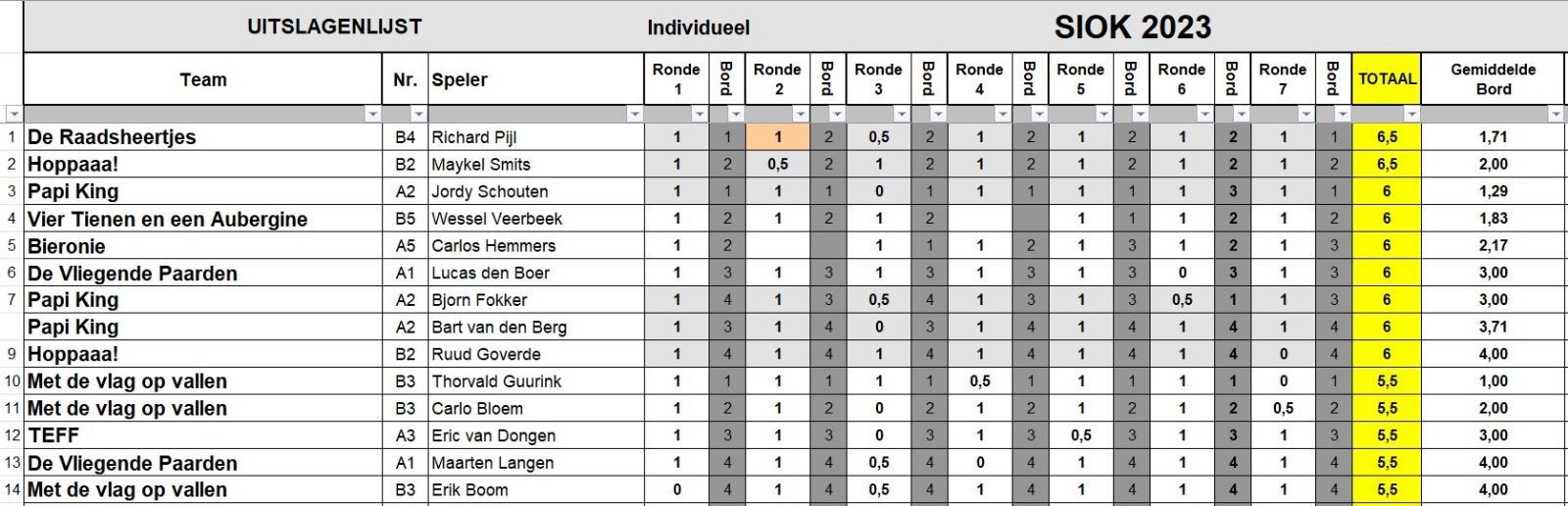 Ook de individuele scores werden bijgehouden en Richard Pijl van de Raadsheertjes uit Zundert en Maykel Smits van Hoppaaa! wisten met 6,5 uit 7 de eerste prijs in de wacht te slepen!